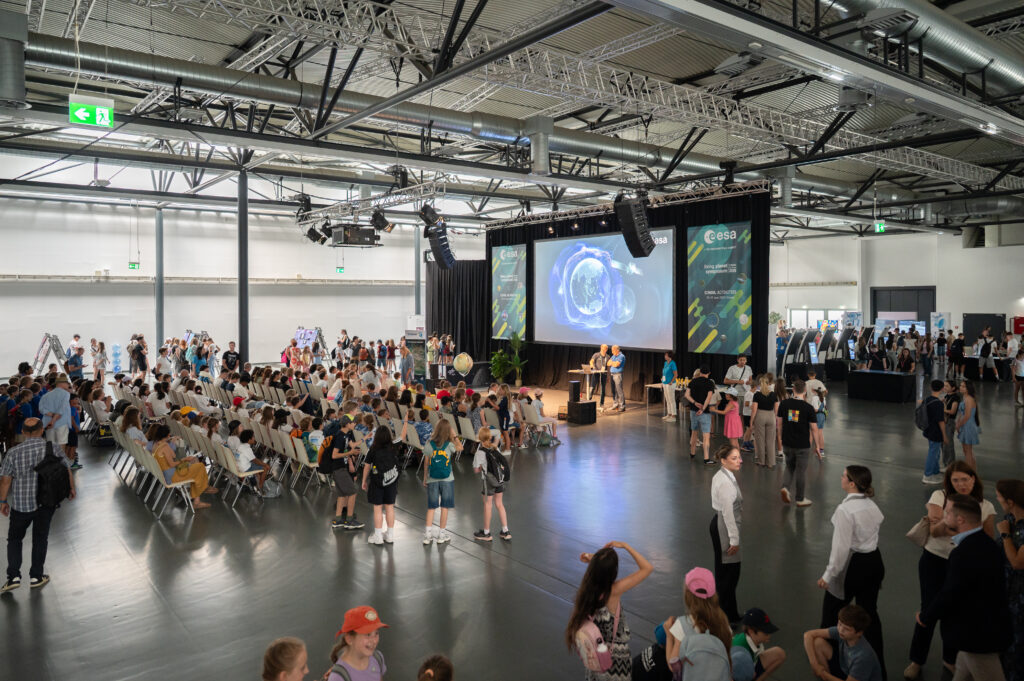 Neben Wissenschaft, Industrie und Politik war auch der Bildungsbereich stark vertreten. ESERO Austria gestaltete mit Unterstützung der ESA und viele weitere Partner ein vielfältiges Bildungs- und Erlebnisprogramm für Schulklassen, Lehrkräfte und interessierte Jugendliche. In Halle X4 boten Workshops, Führungen und ein interaktives Bühnenprogramm für bis zu 2500 Schüler*innen spannende Einblicke in die Welt der Erdbeobachtung.